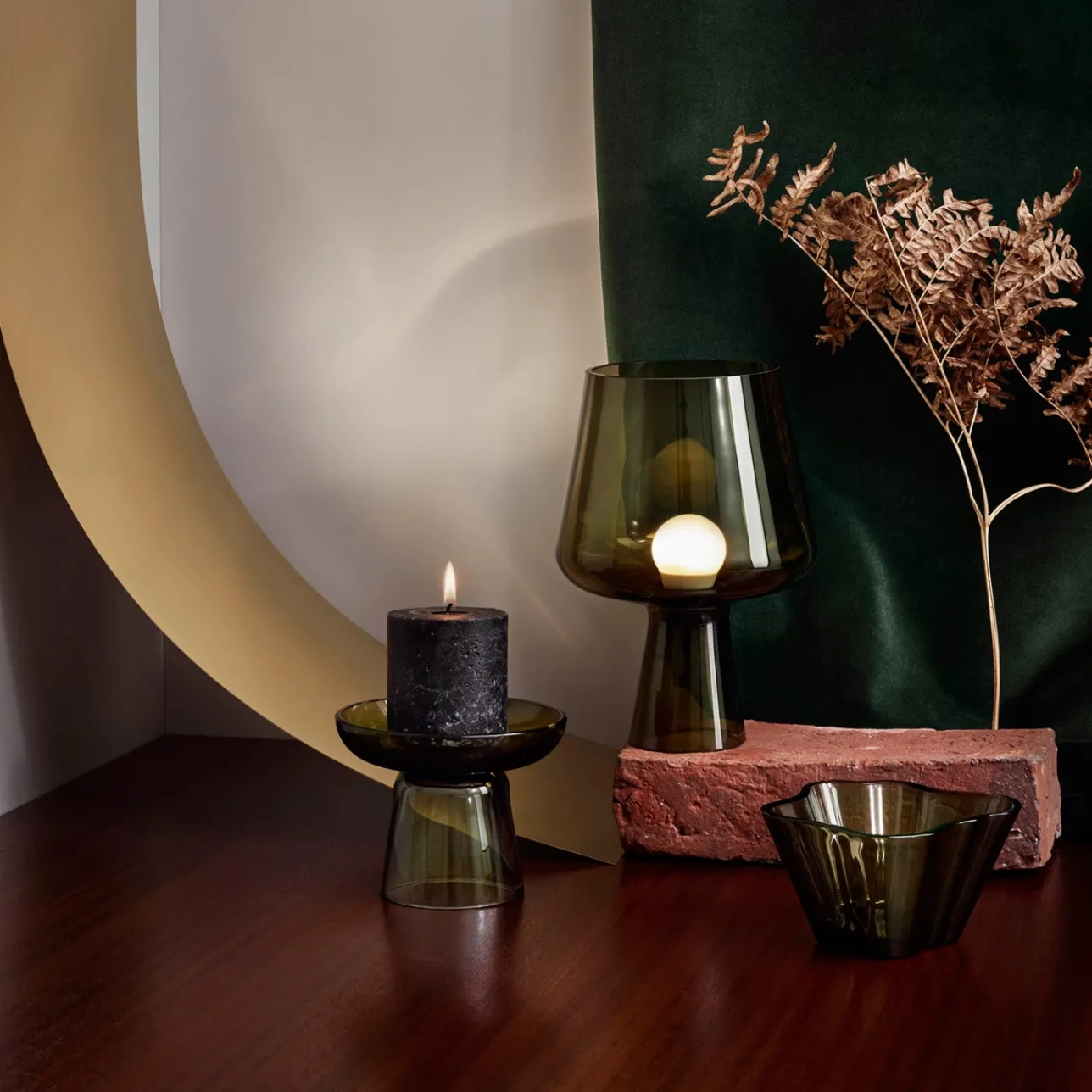 Formgivaren Magnus Pettersen inspirerades av modern arkitektur, framförallt kombinationen av betong och glas, när han skapade Leimu. Pettersen ville skapa det vackra samspelet mellan varma och kalla element han själv kallar ”industriell lyx”. Leimu är skapad för att efterlikna en flammande låga och balanserar varsamt ömtåliga material med en strukturell form. Kupan är munblåst av experterna vid Iittalas glasbruk. Leimu-lampan är handgjord och har en behagligt mjuk yta. Den minsta modellen är tillräckligt liten för att få plats på ett sängbord eller en hylla. Den avger ett mjukt, behagligt ljus som skapar värme i alla miljöer. Den fräscha mossgröna färgen skapar ett naturligt lugn. En modern klassiker som har fått den prestigefulla utmärkelsen iF Design Award.