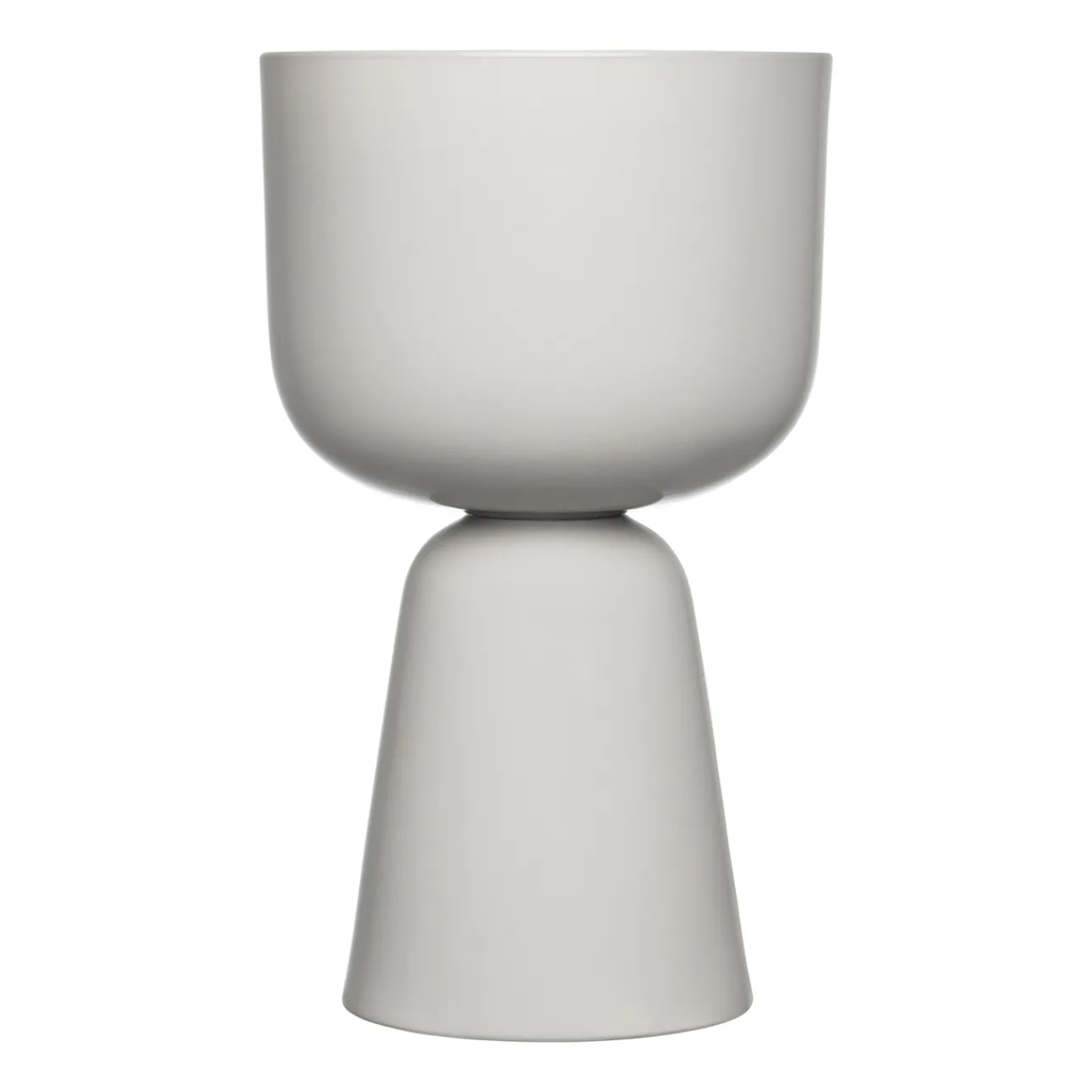 Den stora Nappula-krukan är som en skulptur. Du kan placera den storaKrukan antingen direkt på golvet eller på en möbel eller piedestal. Matti Klenell designade den ljusgrå Nappula-krukan på 400×245 mm för stora växter. Det lekfulla designspråket iKombination med den vackra nyansen gör helhetsbilden imponerande men lugn. Vacker som den är eller iKombination med mindre krukor.