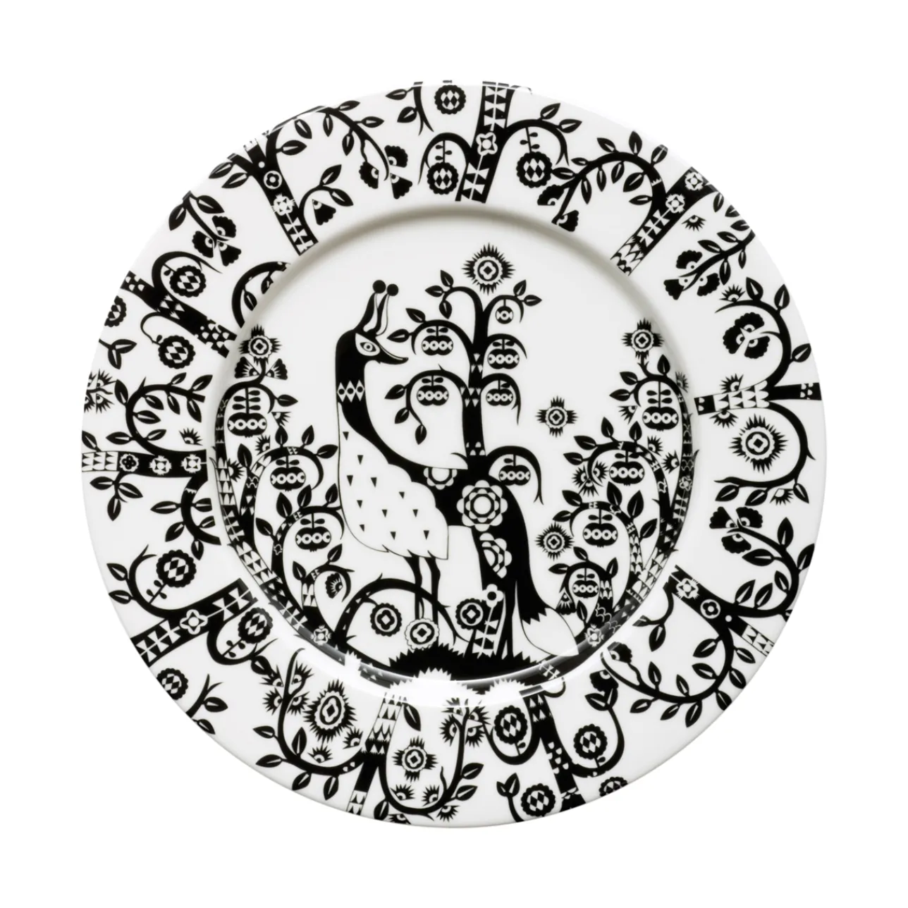 I Taika (magi på finska) kombineras designern Klaus Haapaniemis egensinniga konst med den funktionella designen hos Heikki Orvolas Aika-serie. Resultatet är en förtrollande serie som hyllar folklore och sagor i en enkel och ren design. De färgstarka karaktärerna livar upp vardagen med berättelser och fantasi. Den tåliga servisen kan användas till mycket och ger varje dukning en touch av magi. Taika-tallriken passar perfekt som frukost- eller desserttallrik. Kombinationen av svart och vitt framhäver det livfulla mönster som pryder hela tallriken och löper längs kanten. Skapa roliga kombinationer genom att mixa och matcha olika färger. Samla på alla delar. En populär present. Tål mikrovågsugn och maskindisk.
